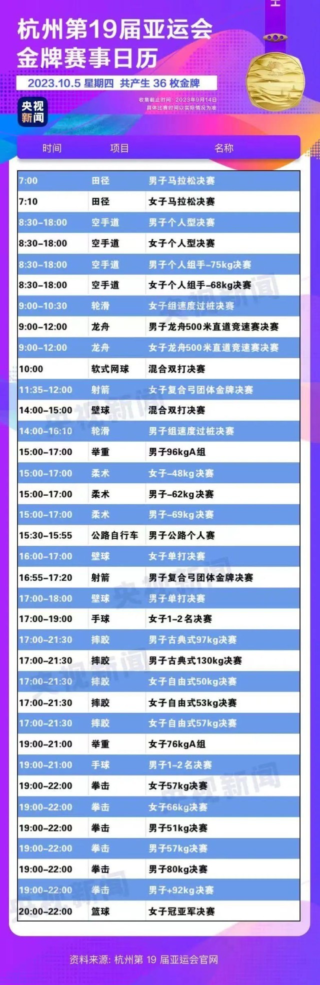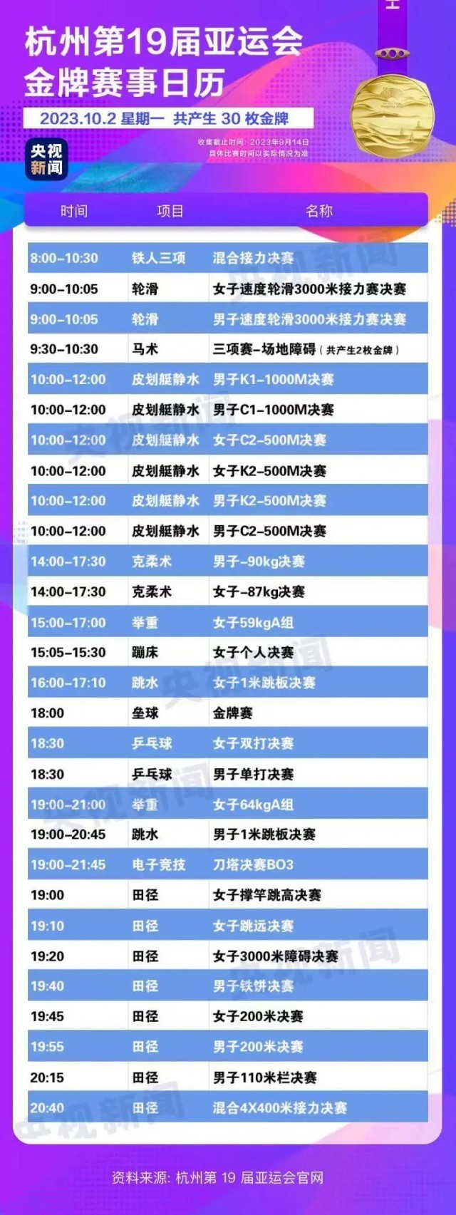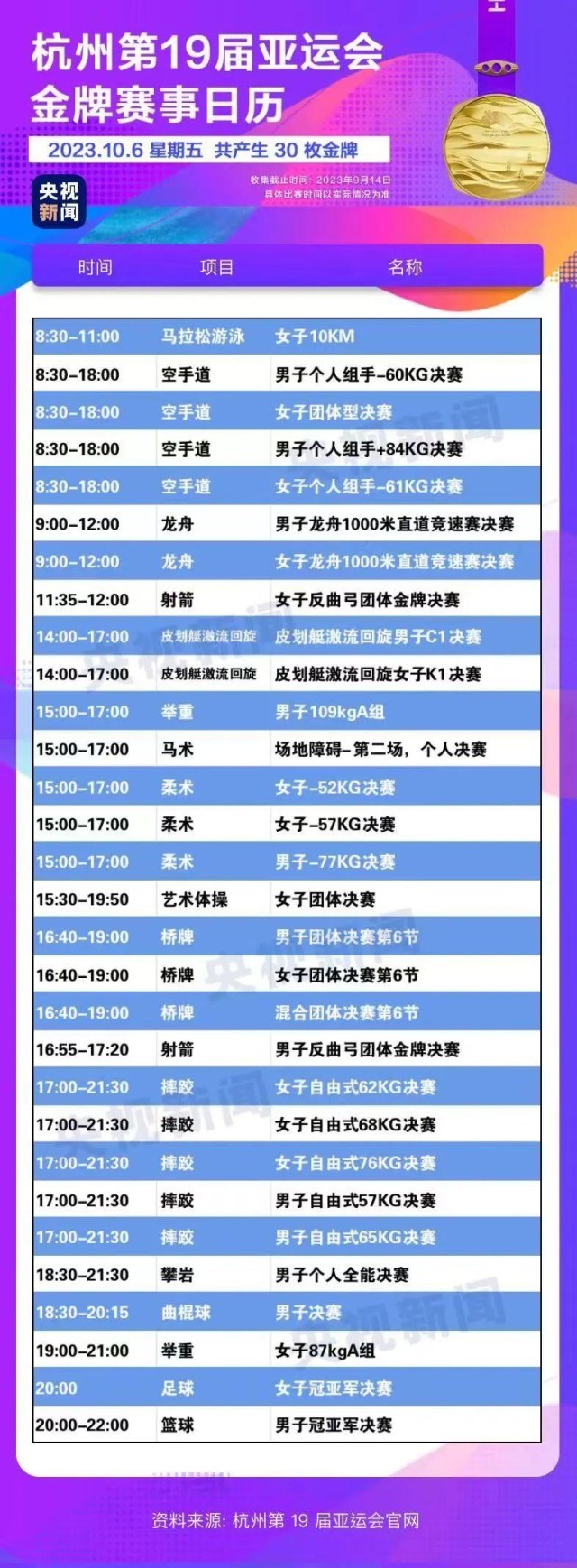 最后,小編還為你準備了一份杭州亞運會金牌賽事日歷,日歷里包含所有481枚金牌產(chǎn)生的時間?;瑒邮种福纯茨汴P(guān)注的比賽在哪天舉行。