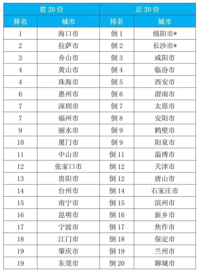 從重點城市排名看,1至9月,168個重點城市中,空氣質量排名前20位城市依次是???、拉薩和舟山等城市(從第1名至并列第19名);空氣質量排名后20位城市依次是綿陽、長沙和咸陽等城市(從倒數(shù)第1名至倒數(shù)第20名)。據(jù)了解,綿陽市的一個監(jiān)測站點4月和5月、長沙市的一個監(jiān)測站點6月受到嚴重人為干擾,生態(tài)環(huán)境部對所在城市當月六項污染物濃度進行了最大值替代處理。(記者高敬)