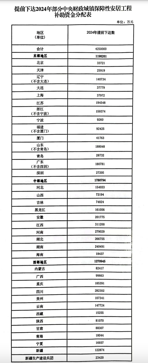 一、為進一步加快轉(zhuǎn)移支付預算執(zhí)行進度,提高地方預算編制的完整性,現(xiàn)提前下達你?。ㄗ灾螀^(qū)、直轄市、計劃單列市)2024年部分中央財政城鎮(zhèn)保障性安居工程補助資金(見附件),項目代碼10000013Z135080000028,列2024年政府收支分類科目1100258“住房保障共同財政事權(quán)轉(zhuǎn)移支付收入”科目。