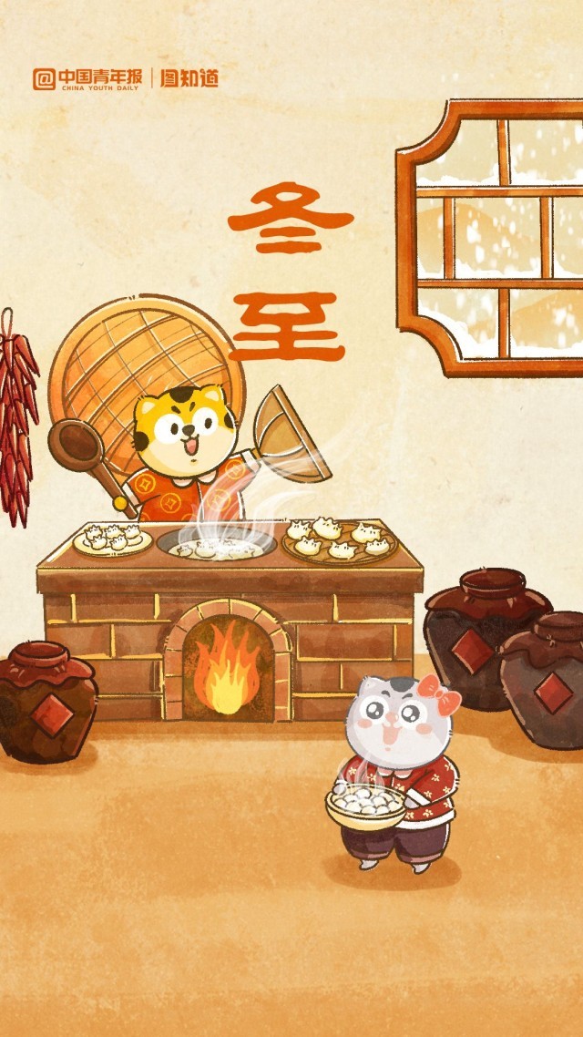 “冬至一陽生,天時(shí)轉(zhuǎn)日長”,一年中的一個(gè)重要節(jié)氣——冬至到了。這天,是數(shù)九寒天之始,也預(yù)示著春的臨近。宋代朱淑真在《冬至》中寫道,“已有岸旁迎臘柳,參差又欲領(lǐng)春來?!惫湃苏f“冬至大如年”,明清時(shí)期,一年一度最盛大的祭天盛典便是在冬至日。藏在食物里的美好祈愿也是保留至今的冬至儀式感。在我國北方,冬至要“端餃子碗”;在南方,“吃了湯圓大一歲”。快來和青小豹、豹小花分享,今天你吃了啥?(文/張藝 圖/程璨)