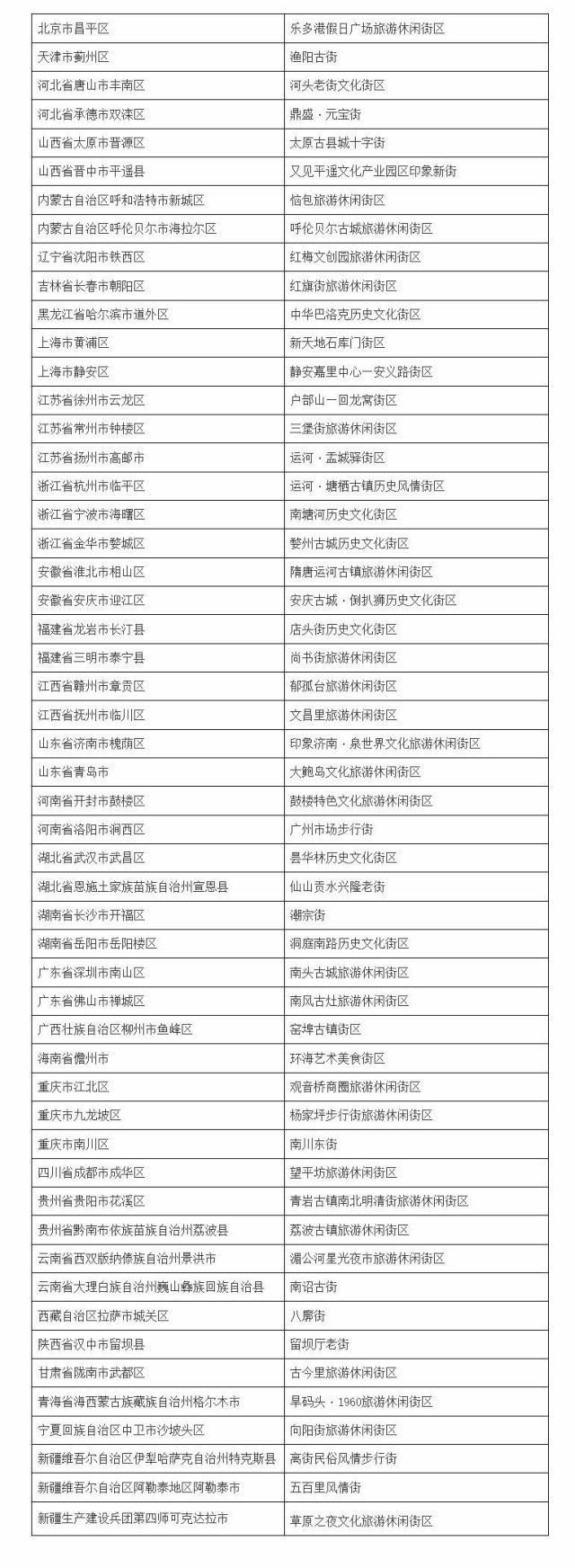 第三批國家級旅游休閑街區(qū)名單的公告