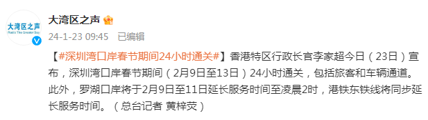 發(fā)布時間:2024-01-23 11:13:00來源: 大灣區(qū)之聲微博