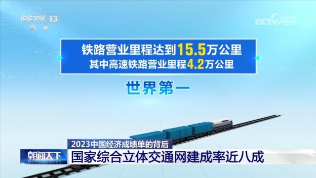 鐵路營業(yè)里程達(dá)15.5萬公里,其中,高速鐵路營業(yè)里程4.2萬公里,居世界第一;公路通車?yán)锍?35.5萬公里,其中,高速公路建成里程17.7萬公里,也居世界第一。