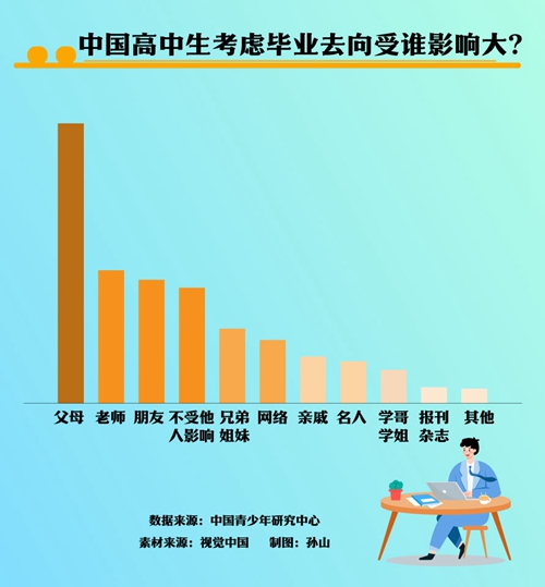 孫宏艷:首先,學校是職業(yè)生涯規(guī)劃教育的主要部門,學校把職業(yè)生涯規(guī)劃教育搞好了,學生能對自己和職業(yè)有準確的認知和定位,他們自然會選擇合適的職業(yè)和工作地。從這次的調查數(shù)據(jù)看,中國高中生已比過去更理性了,就業(yè)地首選已從北上廣這樣的國際大城市到所在地中心城市了。未來,隨著我國鄉(xiāng)村振興等政策的推進和城市的發(fā)展,青年也許會更愿意到所在地縣鎮(zhèn)村等基層去工作。這不僅依賴于政策和城市的發(fā)展,更依賴于青年對自我和職業(yè)的準確定位。