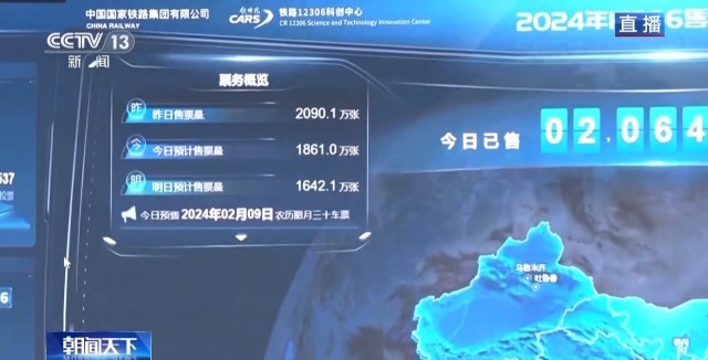 總臺央視記者 陳晰:40天春運(yùn),全國鐵路預(yù)計發(fā)送旅客4.8億人次,日均1200萬人次。今天是春運(yùn)首日,全國鐵路預(yù)計發(fā)送旅客1060萬人次。2024年春運(yùn)的火車票預(yù)售已經(jīng)從1月12日開始發(fā)售,從目前的售票情況來看,旅客出行需求旺盛。