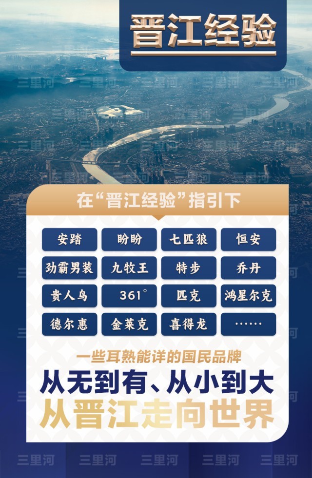 你可能不知道晉江是個(gè)僅有700多平方公里的縣城,但你一定聽說過,安踏、盼盼、七匹狼、恒安、勁霸男裝、鴻星爾克、九牧王、特步、喬丹、貴人鳥、361°、德爾惠、金萊克、喜得龍……