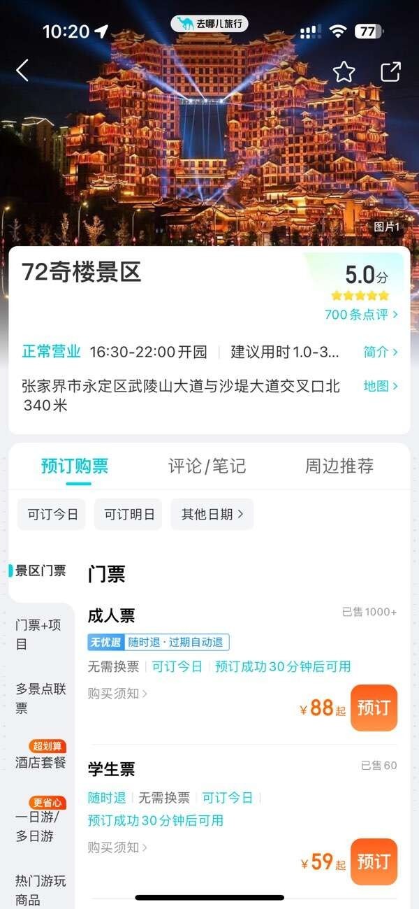 截至記者發(fā)稿時(shí),“七十二奇樓”景區(qū)的門票在多個(gè)平臺仍處于可售狀態(tài)。