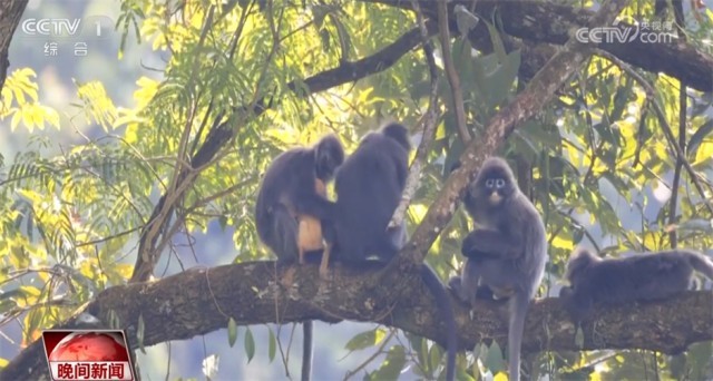 原來爭相帶娃是菲氏葉猴家族獨特的育兒方式。菲氏葉猴聚群而居,每個家庭成員都想和“小金猴”有更多親密接觸。此外,據(jù)護林員介紹,這些菲氏葉猴還有著“謙謙君子”的美譽。