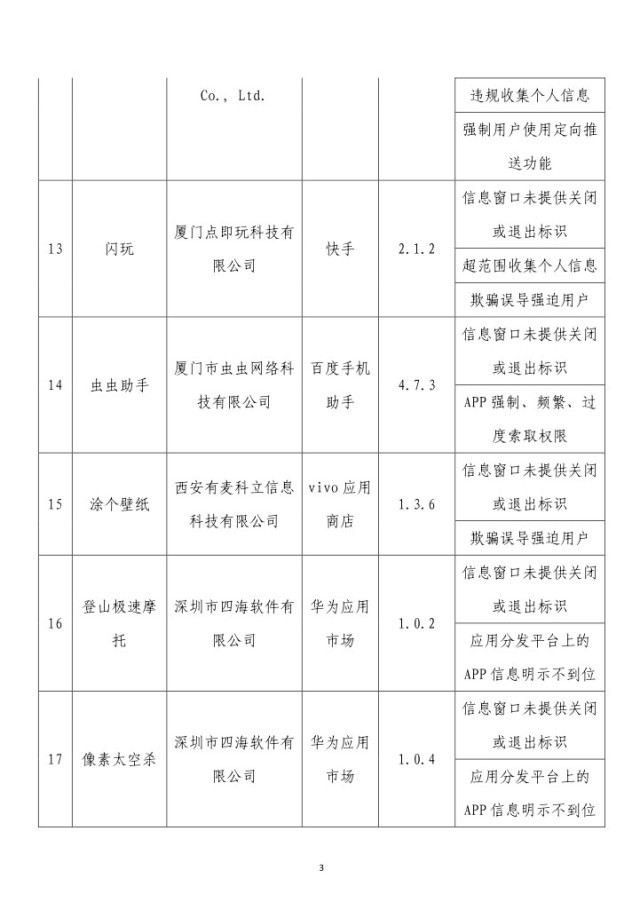 央視網(wǎng)消息:據(jù)工業(yè)和信息化部網(wǎng)站消息,工業(yè)和信息化部信息通信管理局3月14日公布《關(guān)于侵害用戶(hù)權(quán)益行為的APP(SDK)通報(bào)(2024年第2批,總第37批)》: