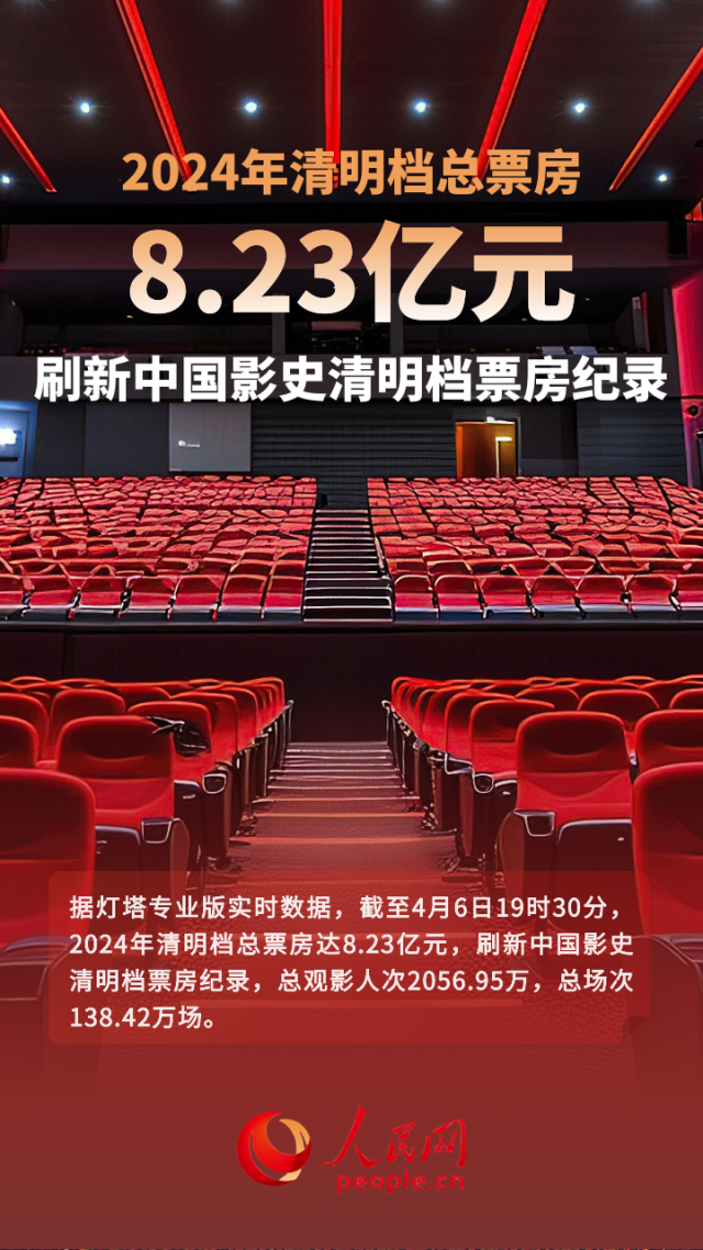 據(jù)燈塔專業(yè)版實(shí)時數(shù)據(jù),截至4月6日19時30分,2024年清明檔總票房達(dá)8.23億元,刷新中國影史清明檔票房紀(jì)錄,總觀影人次2056.95萬,總場次138.42萬場。