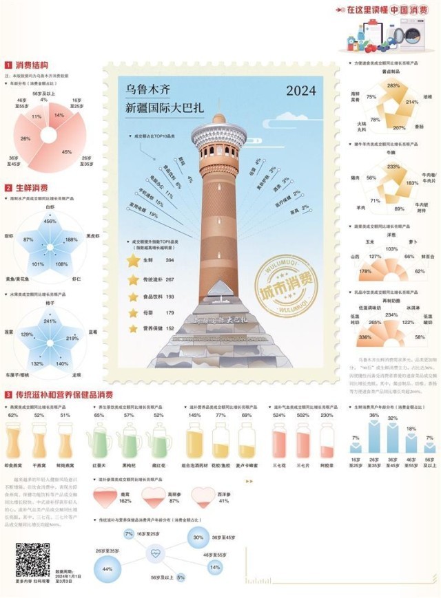 觀察、梳理和分析當(dāng)?shù)叵M(fèi)數(shù)據(jù),可以看出,烏魯木齊消費(fèi)市場持續(xù)升溫,特別是春節(jié)期間,消費(fèi)潛能得到充分釋放,呈現(xiàn)飲食消費(fèi)升級等新趨勢。