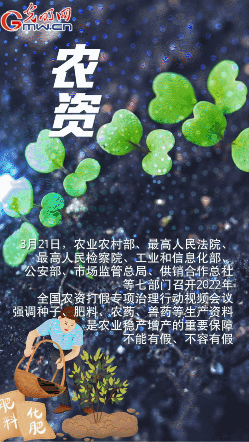 3月21日,農(nóng)業(yè)農(nóng)村部、最高人民法院、最高人民檢察院、工業(yè)和信息化部、公安部、市場監(jiān)管總局、供銷合作總社等七部門在京聯(lián)合召開2022年全國農(nóng)資打假專項(xiàng)治理行動(dòng)視頻會(huì)議。會(huì)議強(qiáng)調(diào),種子、肥料、農(nóng)藥、獸藥等生產(chǎn)資料是農(nóng)業(yè)穩(wěn)產(chǎn)增產(chǎn)的重要保障,必須保證質(zhì)量,不能有假、不容有假。