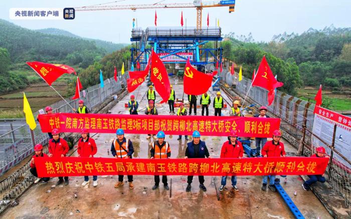南玉高鐵跨柳北高速特大橋連續(xù)梁順利合龍
