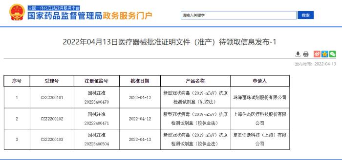 國家藥監(jiān)局又批準(zhǔn)3個(gè)新冠病毒抗原檢測(cè)試劑上市
