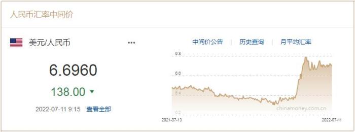7月11日人民幣對美元匯率中間價調(diào)升138個基點