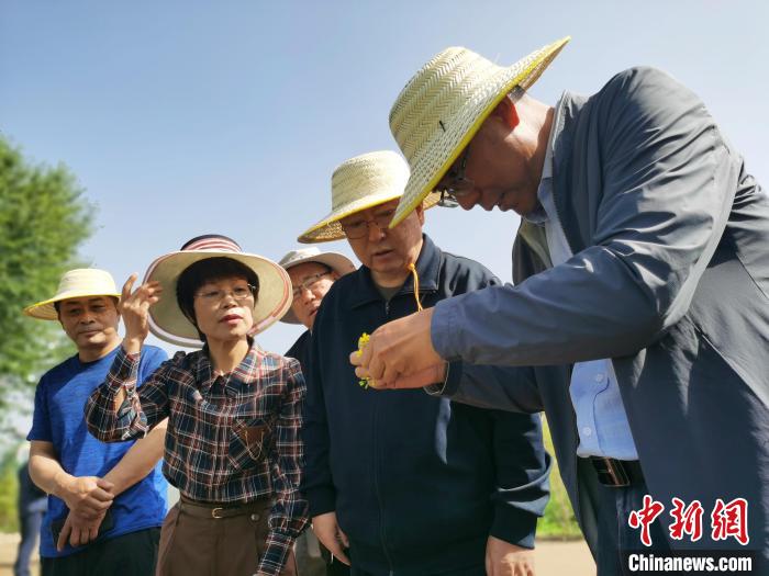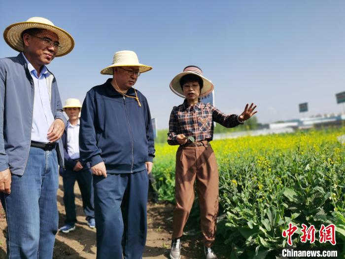圖為青海省政協(xié)主席公保扎西(中)調(diào)研油菜種植。 張?zhí)砀?攝