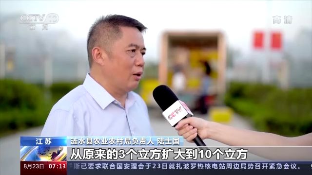 漣水縣農(nóng)業(yè)農(nóng)村局負(fù)責(zé)人 陸士國:針對這段時間的高溫天氣,我們又對小型移動式冷庫進(jìn)行了升級改造,從以前3個立方擴(kuò)大到10個立方,保電時間從半個小時擴(kuò)大到現(xiàn)在的兩個半小時。