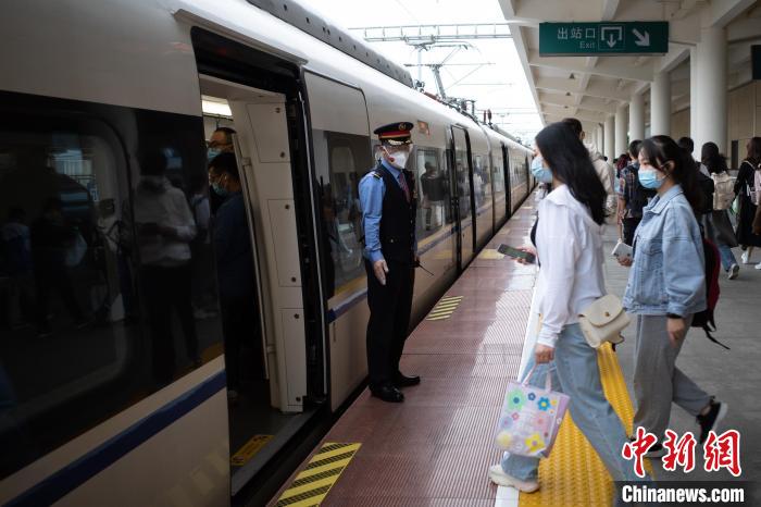 “請保管好自身財物,看管好小孩,照顧好老人,上下車注意腳下安全。”數(shù)百名乘客陸續(xù)上車后,鐘靜開始在車廂里巡視。疫情防控期間,他要提醒大家戴好口罩。遇到行李架上行李擺放不規(guī)范,他要動手整理。同時,他還負責(zé)整列4節(jié)車廂的查票、補票工作。