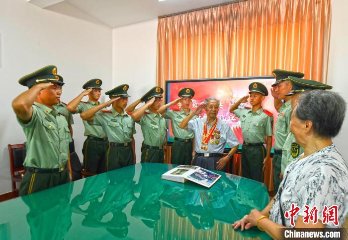 中新網(wǎng)三明10月25日電 (陳揚鈦 胡鑫 鐘煒俊)“張爺爺,您和奶奶身體都還好吧!由于當(dāng)前部隊各項任務(wù)比較重,今天抗美援朝72周年這個特別的日子沒辦法過來看望您了,您和奶奶保重身體,等忙完這段時間,我和戰(zhàn)士們一起到家里看您?!?0月25日上午,武警三明支隊寧化中隊指導(dǎo)員蔡躍通過微信視頻與96歲高齡抗美援朝老兵張美庚對話。