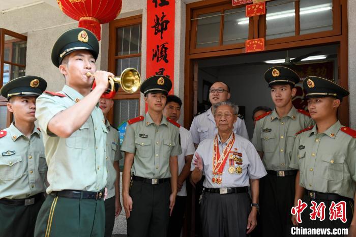 寧化籍96歲抗美援朝老兵張美庚走進武警三明支隊軍營?!∥渚髦ш牴﹫D