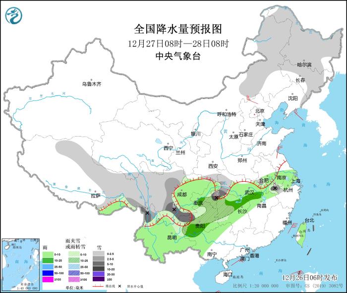 圖1 全國降水量預報圖(12月26日08時-27日08時)