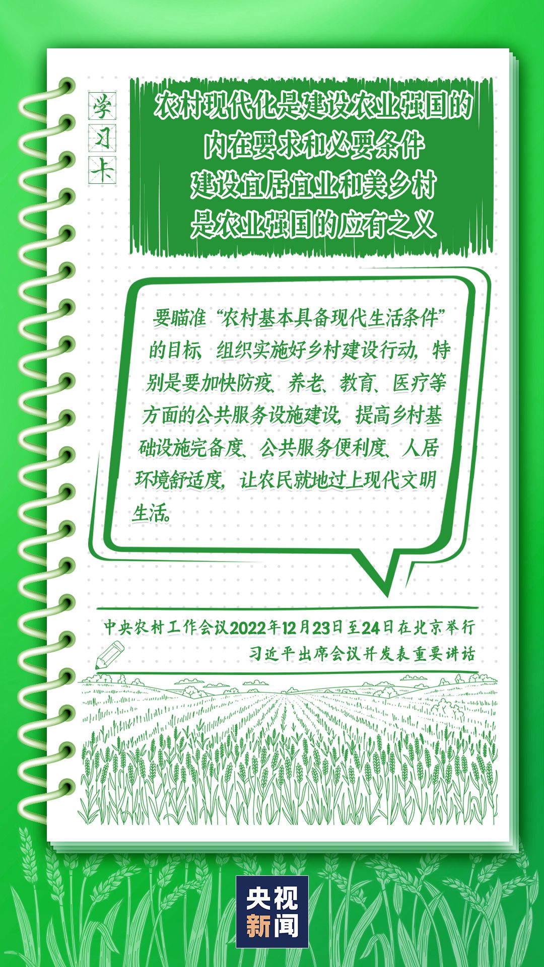 中央農(nóng)村工作會(huì)議12月23日至24日在北京舉行。習(xí)近平總書記出席會(huì)議并發(fā)表重要講話強(qiáng)調(diào),錨定建設(shè)農(nóng)業(yè)強(qiáng)國(guó)目標(biāo),切實(shí)抓好農(nóng)業(yè)農(nóng)村工作。如何建設(shè)農(nóng)業(yè)強(qiáng)國(guó)?總書記給出了“路線圖”,一起學(xué)習(xí)↓