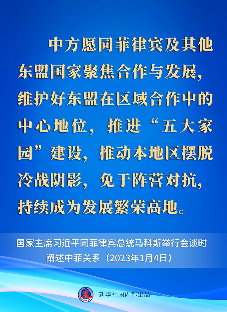 1月4日下午,國家主席習近平在人民大會堂同來華進行國事訪問的菲律賓總統(tǒng)馬科斯舉行會談。關于中菲關系,習近平主席在會談中作出一系列重要闡述。一起來看要點。