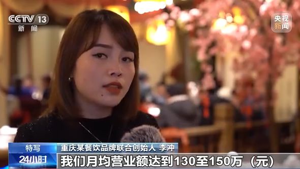 重慶某餐飲品牌聯合創(chuàng)始人 李沖:比如說我們這個店,我們在疫情前,最好的時候我們月均營業(yè)額達到130萬元—150萬元,目前的話可能恢復到70%左右。