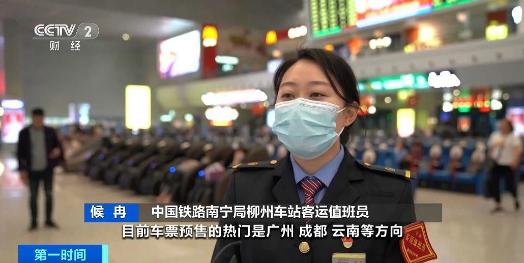 中國(guó)鐵路南寧局柳州車站客運(yùn)值班員 候冉:目前車票預(yù)售的熱門(mén)是廣州、成都、云南等方向。預(yù)計(jì)整個(gè)五一假期,柳州站增加南寧、賀州等方向6趟車。