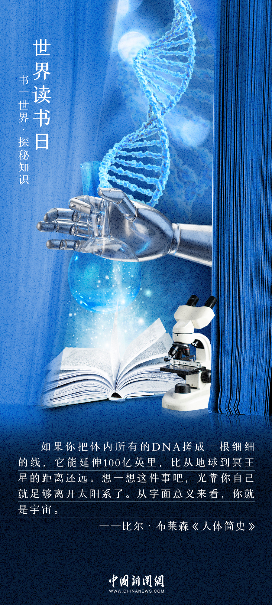 光怪陸離的科幻未來(lái),快意恩仇的武俠江湖,氣勢(shì)恢宏的史詩(shī)典故......書(shū)帶你穿梭古今,造訪未來(lái),領(lǐng)略萬(wàn)千世界。一書(shū)一世界,萬(wàn)字化乾坤。4月23日,世界讀書(shū)日,一起體會(huì)文字帶來(lái)的無(wú)限遐想↓↓↓