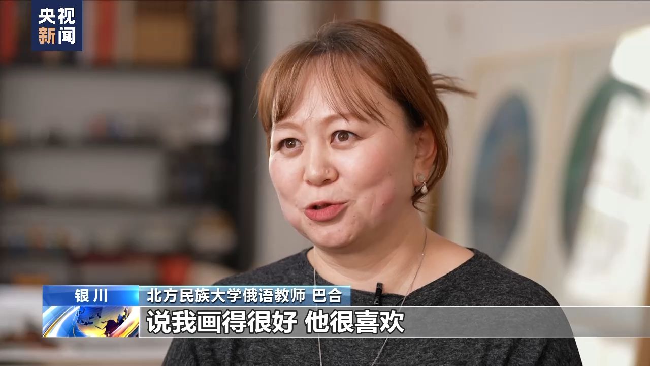 北方民族大學(xué)俄語(yǔ)教師 巴合:我丈夫看了我的畫,說(shuō)我畫得很好,他很喜歡。從那以后,我就開(kāi)始了我的藝術(shù)之旅。
