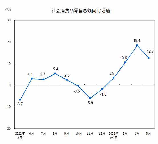 國家統(tǒng)計局:2023年5月份社會消費品零售總額增長12.7%