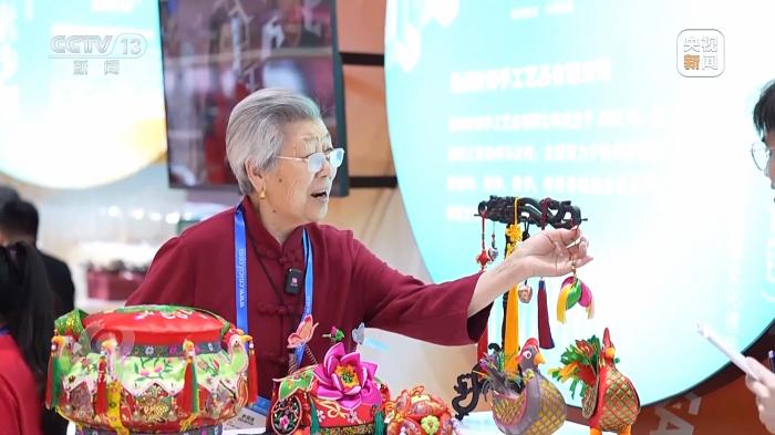 在江蘇展區(qū),一位正在做針線活的白發(fā)老人引人注目,她是江蘇省級(jí)非遺項(xiàng)目傳承人王秀英。王奶奶做的徐州香包名字叫做針棒,有著豐厚的文化蘊(yùn)涵和文化價(jià)值,入選第一批國(guó)家級(jí)非物質(zhì)文化遺產(chǎn)擴(kuò)展項(xiàng)目名錄。這次和王奶奶一同來參展的還有她的孫女孫歌堯。在學(xué)習(xí)傳統(tǒng)工藝的同時(shí),孫歌堯大膽創(chuàng)新,嘗試融入更多技法和材質(zhì)。