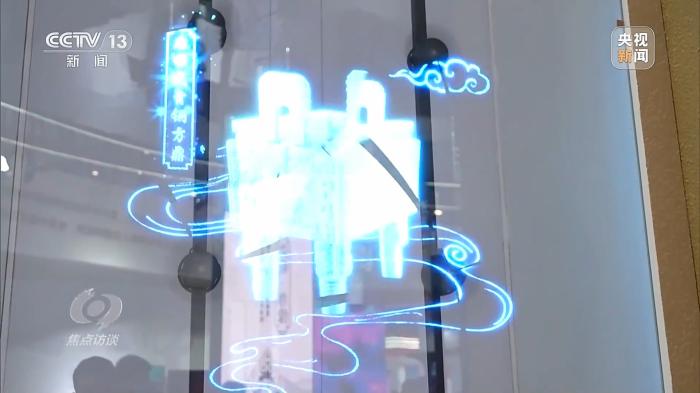 在AI繪畫一旁,國(guó)家級(jí)保護(hù)文物司母戊大方鼎、青銅縱目面具、四羊方尊、越王勾踐劍、曾侯乙編鐘等正以數(shù)字化形式呈現(xiàn)在觀眾面前。參展商通過數(shù)字孿生技術(shù)復(fù)現(xiàn)或重構(gòu)文物和文化遺產(chǎn)的數(shù)字鏡像,從而實(shí)現(xiàn)文物和文化遺產(chǎn)的保護(hù)、修復(fù)直至永久性保存和活態(tài)化傳承。觀眾既可以看到部分真實(shí)的復(fù)制文物和文化遺產(chǎn),又可以體驗(yàn)虛擬的數(shù)字文物和文化遺產(chǎn),虛實(shí)之間,體會(huì)數(shù)字化給傳統(tǒng)文物和文化遺產(chǎn)帶來的生命力。