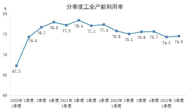 國家統(tǒng)計局:2023年二季度全國工業(yè)產(chǎn)能利用率為74.5%