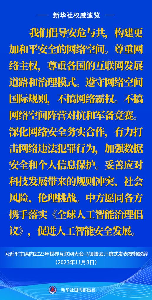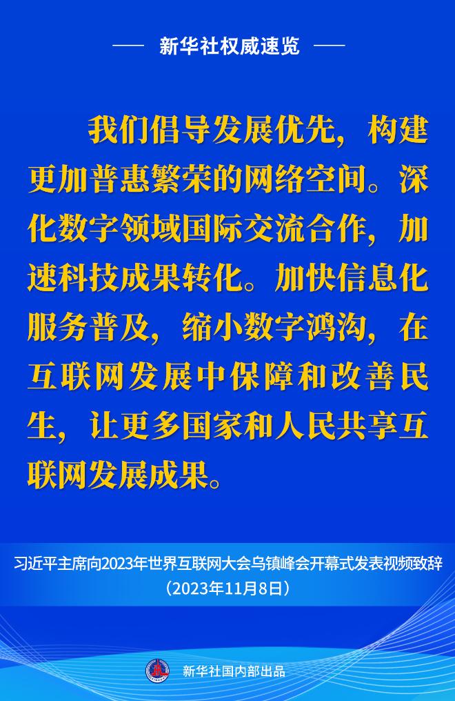 新華社權(quán)威速覽丨習(xí)近平主席向2023年世界互聯(lián)網(wǎng)大會(huì)烏鎮(zhèn)峰會(huì)開幕式視頻致辭金句