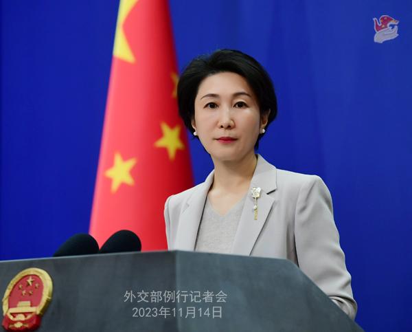 中新網(wǎng)北京11月14日電 (謝雁冰 黃鈺欽)中國外交部發(fā)言人毛寧14日主持例行記者會。