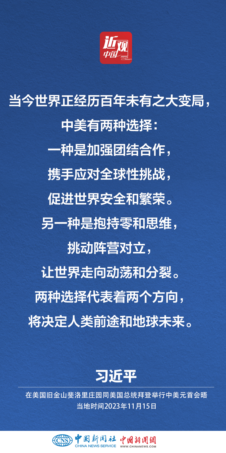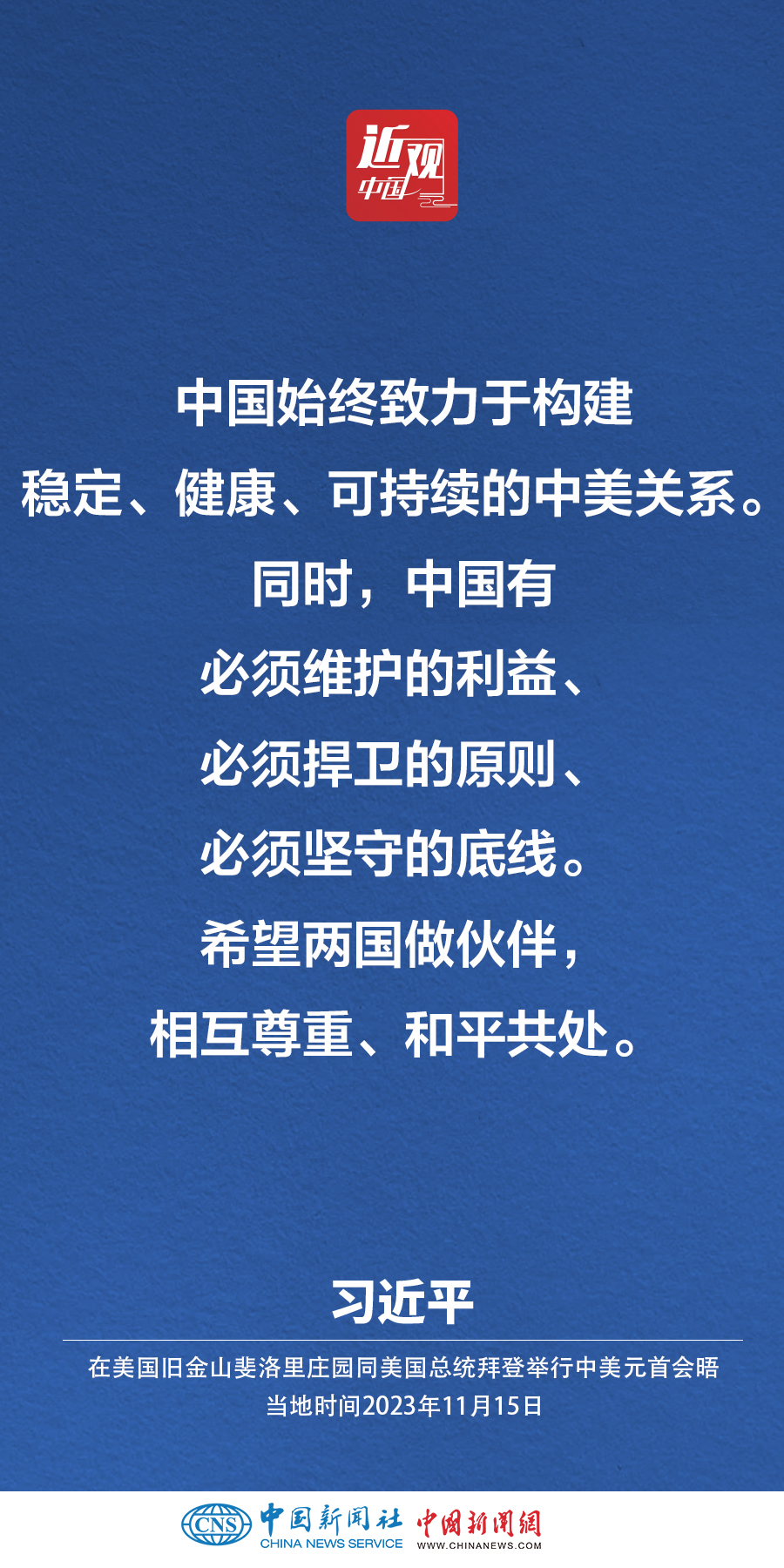 當(dāng)?shù)貢r(shí)間11月15日,中國(guó)國(guó)家主席習(xí)近平在美國(guó)舊金山斐洛里莊園同美國(guó)總統(tǒng)拜登舉行中美元首會(huì)晤。習(xí)近平指出——