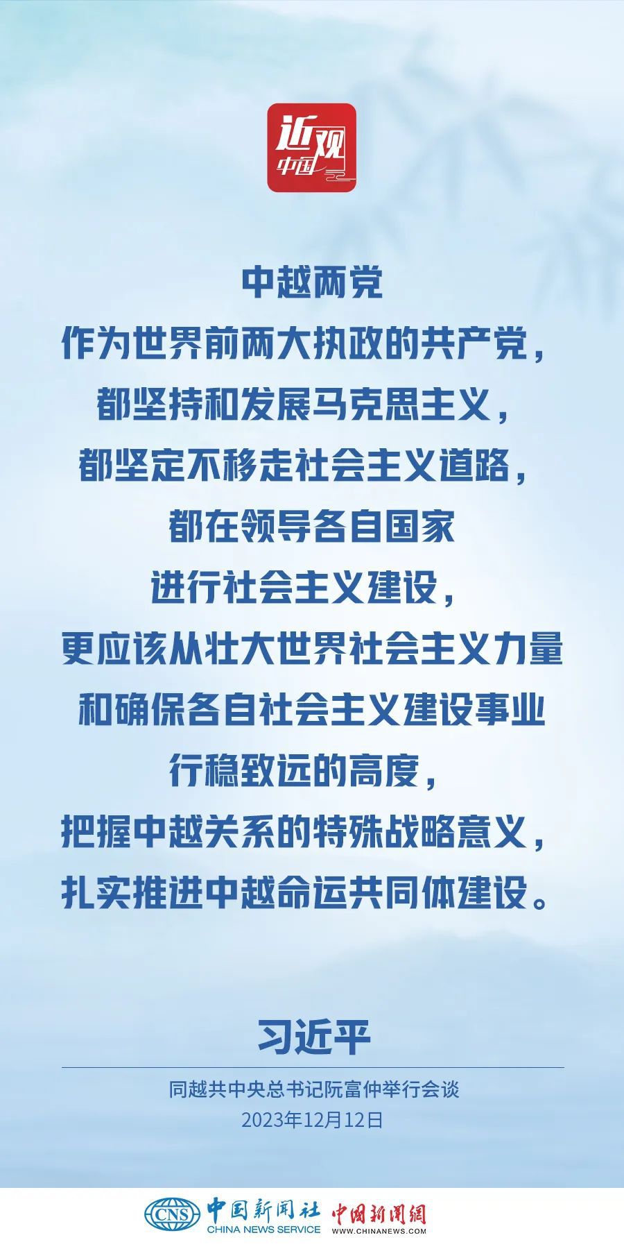 當地時間12月12日下午,剛剛抵達河內的中共中央總書記、國家主席習近平在越共中央駐地同越共中央總書記阮富仲舉行會談。雙方宣布中越兩黨兩國關系新定位,在深化中越全面戰(zhàn)略合作伙伴關系基礎上,攜手構建具有戰(zhàn)略意義的中越命運共同體。習近平指出——