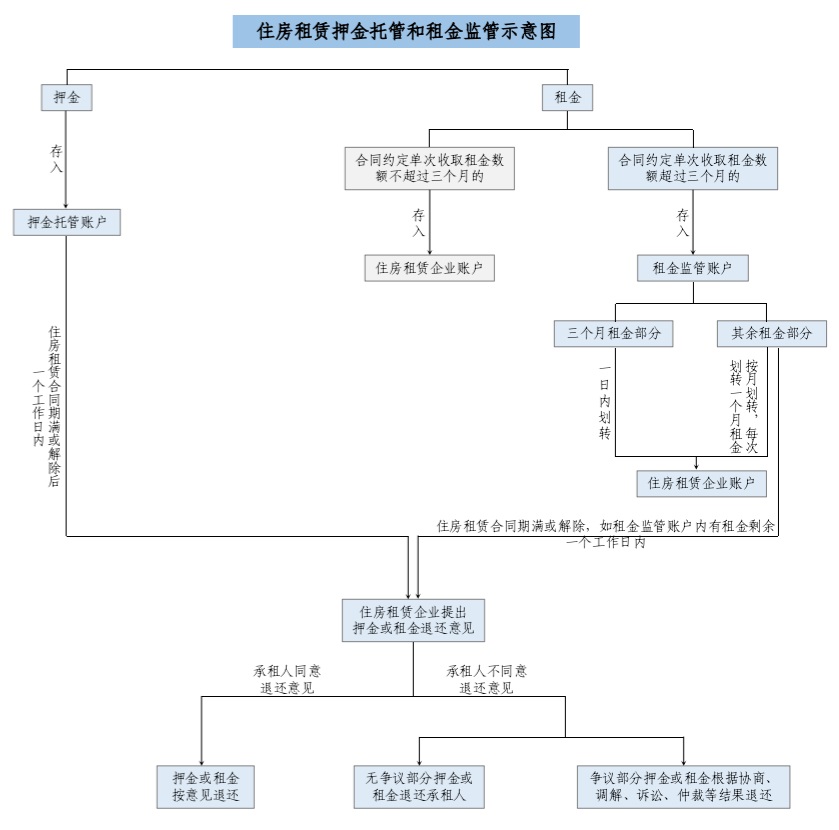 《北京市住房租賃條例》第三十六條規(guī)定,住房租賃企業(yè)向承租人收取的押金應通過第三方專用賬戶托管,單次收取租金的數額超過三個月租金的,超收的租金應當納入監(jiān)管,并且明確住房租賃企業(yè)收取的押金由第三方專用賬戶托管?!墩髑笠庖姼濉穱栏衤鋵崱侗本┦凶》孔赓U條例》規(guī)定,進一步制定相關實施細則,明確賬戶主體,規(guī)范押金托管、租金監(jiān)管業(yè)務流程。