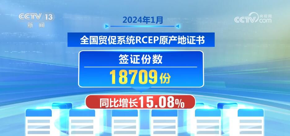 2024年1月,全國貿(mào)促系統(tǒng)RCEP原產(chǎn)地證書簽證份數(shù)為18709份,同比增長(zhǎng)15.08%;辦證企業(yè)3640家,同比增長(zhǎng)10.40%,出口目的國包括日本、印尼、韓國、越南等13個(gè)成員國,預(yù)計(jì)共為我國產(chǎn)品在RCEP進(jìn)口成員國減免關(guān)稅0.09億美元,RCEP的政策紅利在持續(xù)釋放。