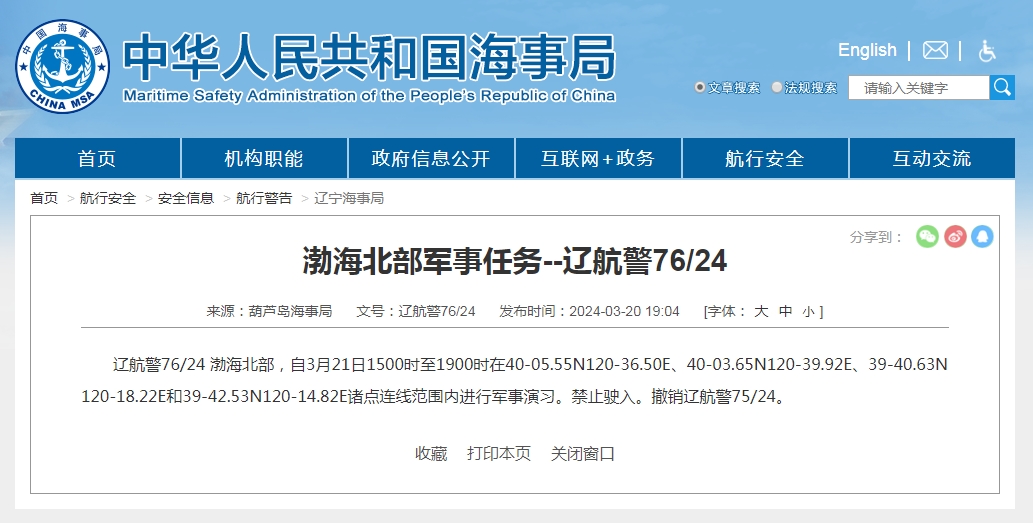 航行警告!渤海北部部分海域?qū)⑦M(jìn)行軍事演習(xí)
