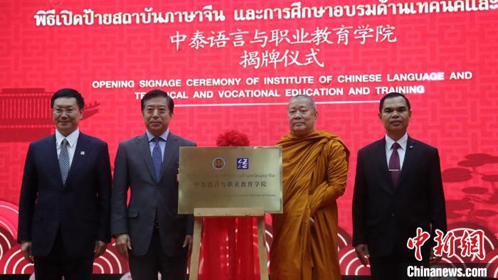 當?shù)貢r間3月21日,中泰語言與職業(yè)教育學(xué)院在泰國曼谷揭牌。該學(xué)院由中國教育部中外語言交流合作中心與泰國教育部職業(yè)教育委員會共同建設(shè)。 中新社發(fā) 王賢思 攝