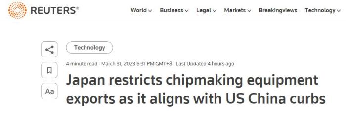 但路透社認(rèn)為,日方的措施是為了配合美國實施的針對中國的芯片出口管制措施。英國《金融時報》還稱,日本此舉是在履行其與美國和荷蘭達(dá)成的、針對中國半導(dǎo)體的三方協(xié)議。