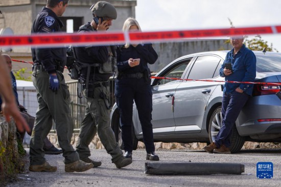 4月6日,在以色列北部的費蘇塔鎮(zhèn),安全人員檢查一枚火箭彈殘骸。新華社發(fā)(阿亞爾·馬戈林攝/基尼圖片社)