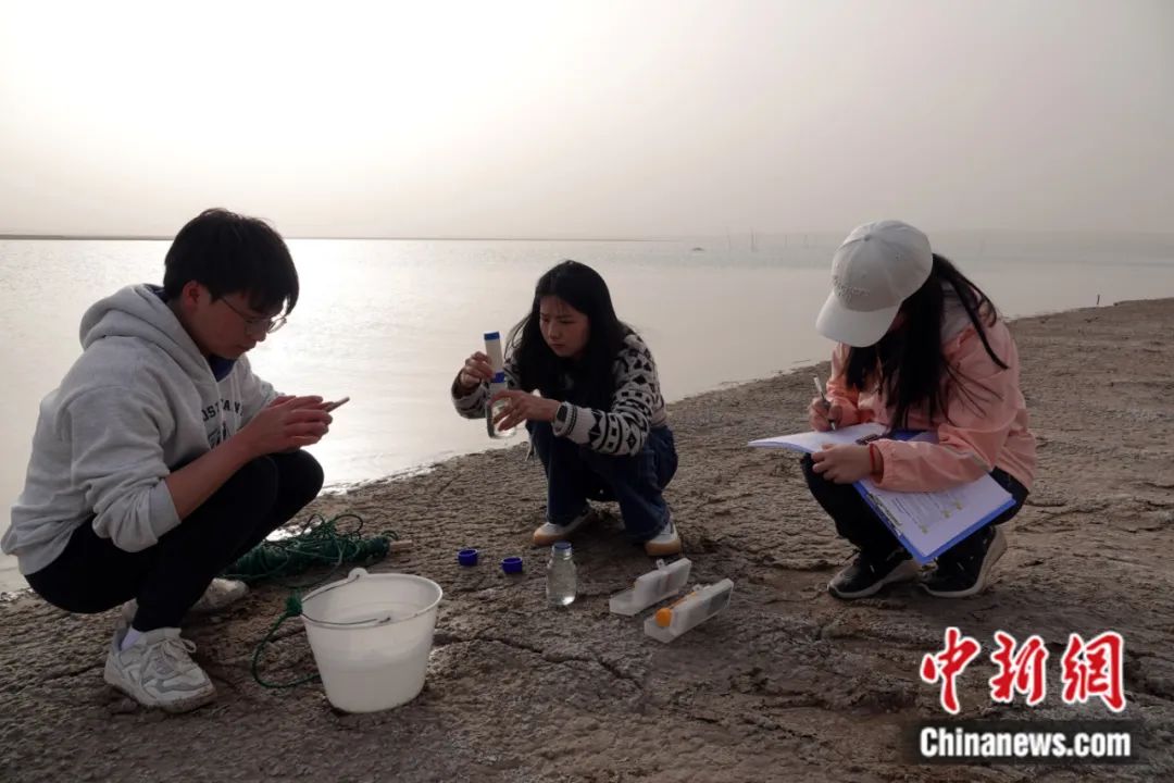2023年3月,新疆若羌縣,參與第三次新疆科考任務的中國科學院新疆生態(tài)與地理研究所三名年輕研究生在途中采集水樣。孫自法 攝