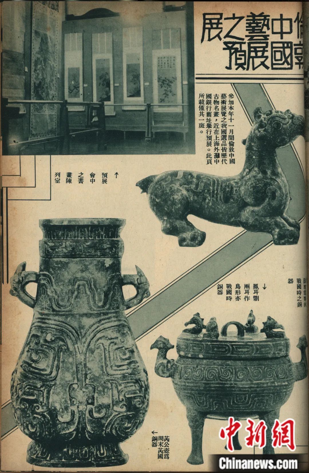 被視為“國之重器”的青銅器,幾乎匯集了當(dāng)時中國主要文化機(jī)構(gòu)最重要的藏品(包括傳世品和出土品),共計108件。其中,清宮舊藏傳世青銅器計96件,由故宮博物院和古物陳列所選送;最新考古發(fā)掘出土青銅器計12件,由河南博物院選送的8件為1923年發(fā)掘出土的“新鄭彝器”,由安徽省立圖書館選送的4件為1933年壽縣出土的“楚器”。瓷器出品則以明清官窯瓷器為大宗,且僅限故宮博物院出品,總計352件。書畫出品僅限故宮博物院和古物陳列所,盡量選出各派重要作家的作品,總計175件。