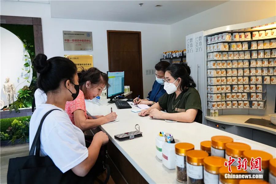 來自比利時(shí)、白俄羅斯和加納的外國友人在山東東營一家中醫(yī)醫(yī)院的中藥房識別、稱量中藥材。周廣學(xué) 攝