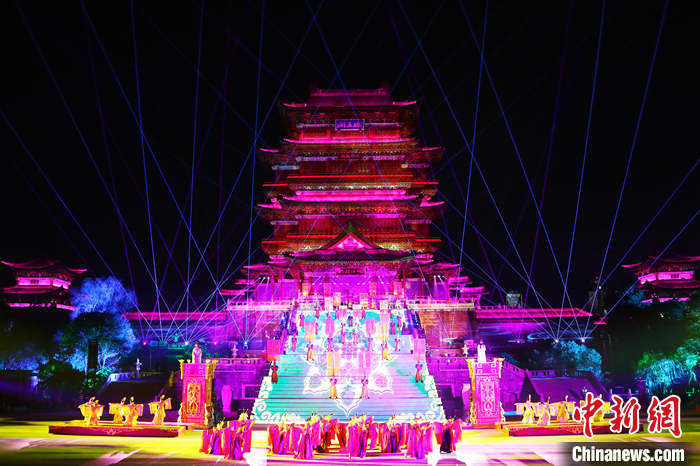 圖為2021年1月1日晚,大型實景演出《尋夢滕王閣》在江西南昌滕王閣景區(qū)正式公演。 中新社記者 劉占昆 攝