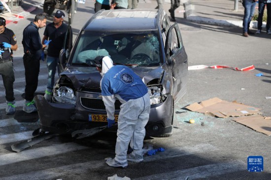 4月24日,警察在耶路撒冷駕車(chē)襲擊事件現(xiàn)場(chǎng)工作。新華社記者 陳君清 攝